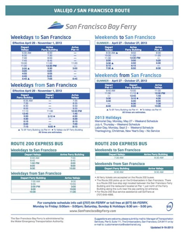 Vallejo to San Francisco Ferry Schedule