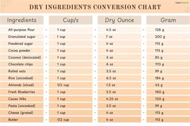 - Refer to ingredient-specific density charts for precise conversions.