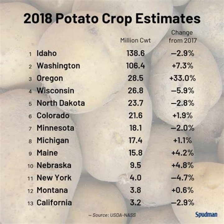 Potato production by state is a significant contributor to the agricultural economy of the United States. The country ranks among the top potato producers globally, with an annual production of approximately 20 million metric tons. The U.S. Department of Agriculture (USDA) closely monitors potato production, providing valuable data that helps stakeholders understand the market dynamics and production trends.