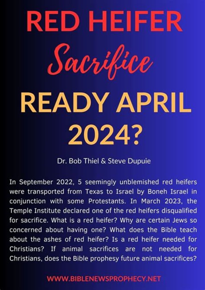 In this article, we will explore the significance of the red heifer sacrifice, its role in religious ceremonies, and the latest developments leading up to 2024. Whether you're a scholar, a follower of religious traditions, or simply curious about this ancient ritual, you'll find comprehensive information and expert analysis here.