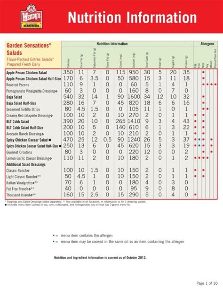 For individuals with food allergies or intolerances, understanding the allergens present in Wendy's menu items is crucial. The Wendy's nutrition chart includes detailed information on common allergens such as gluten, dairy, nuts, and soy.
